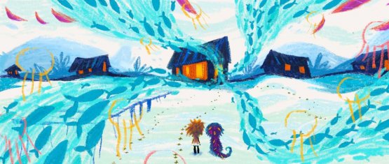 Nuit de tempête de Gil Alkabetz (9’) : Dans une petite maison isolée au milieu des montagnes, alors que l’orage gronde dehors, une vieille dame passe une paisible soirée dans son fauteuil au coin du feu. Jaloux du chat qui ronronne sur ses genoux, le feu s’échappe de la cheminée pour rejoindre le tonnerre et l’éclair qui grondent au dehors. Mais, très vite, la pluie s’abat sur les montagnes et empêche le feu de rentrer chez lui…