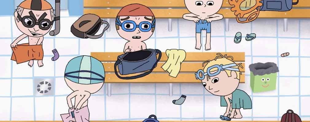 Antoine découvre dans le vestiaire qu’il a oublié son maillot de bain. Le cours de natation commence, il faut qu’il trouve une solution.